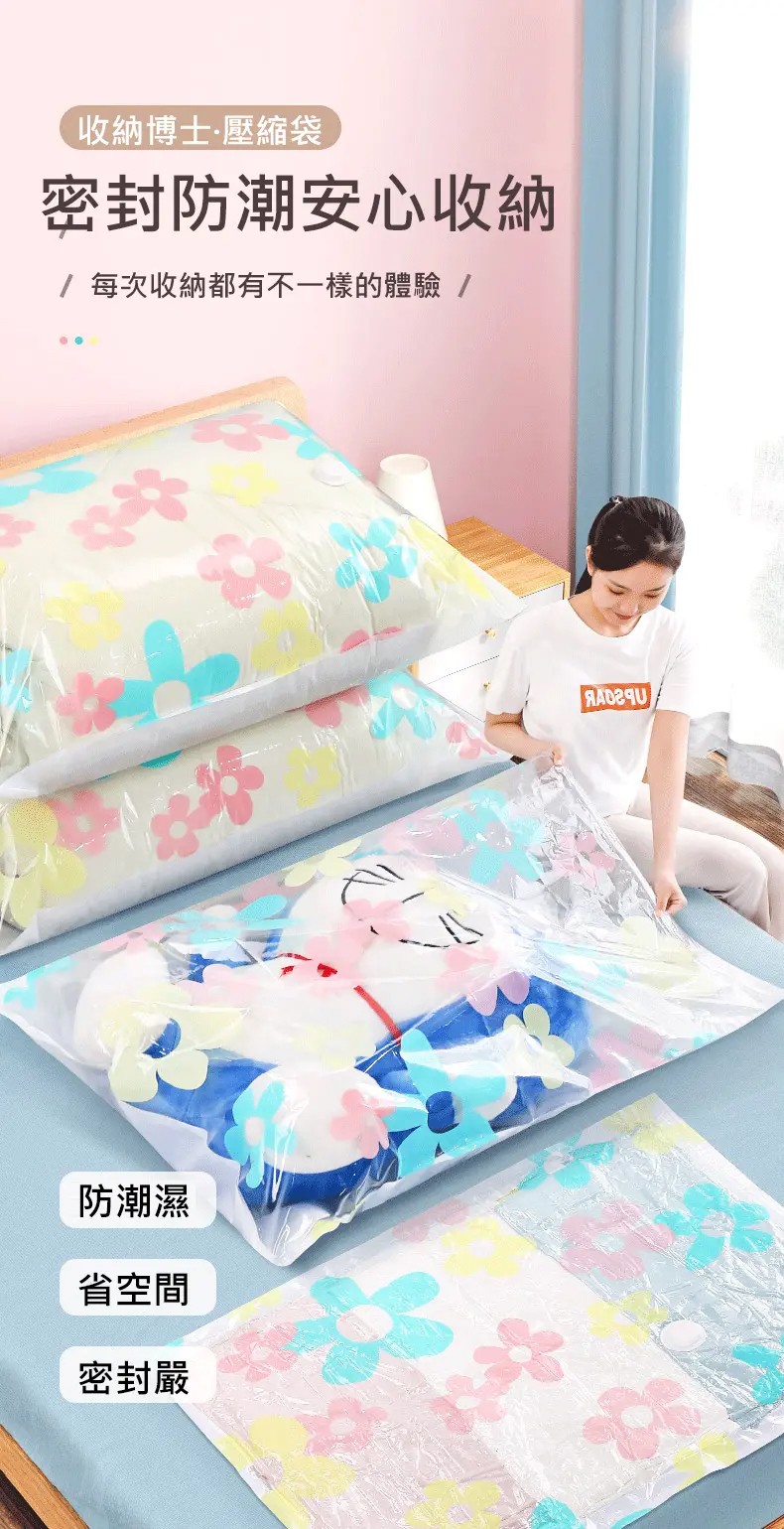 4分鐘前掛式真空壓縮袋推薦,輕鬆節省衣櫃空間 - 【買3送3】尺寸任選★贈電動抽氣機★ NT$999